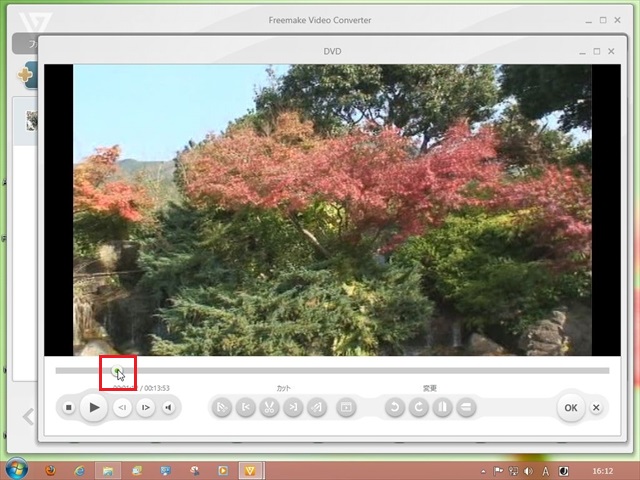 右側の緑のボタンは、映像の向きを変えるボタングループですが、このボタンは、主に写真を扱う際に使うボタンなので、今回は説明を省略します。