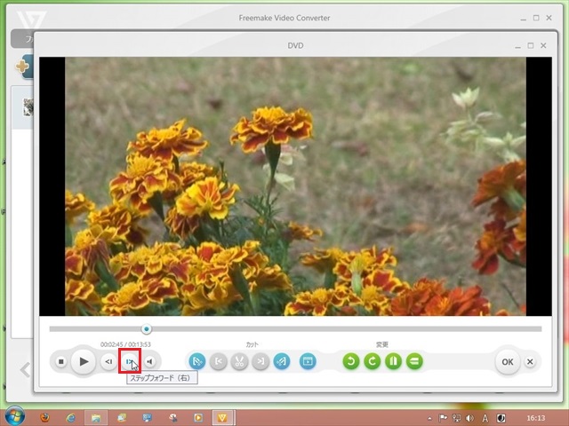 右向きのコマ送りボタン(ステップフォワード)をクリックします。