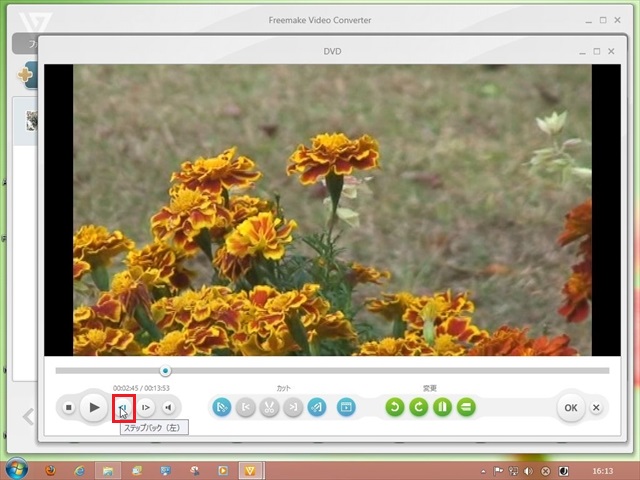 左向きのコマ戻しボタン(ステップバック)をクリックします。