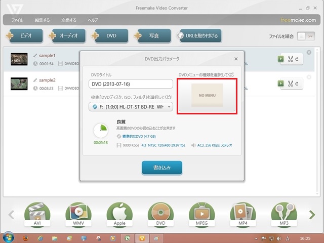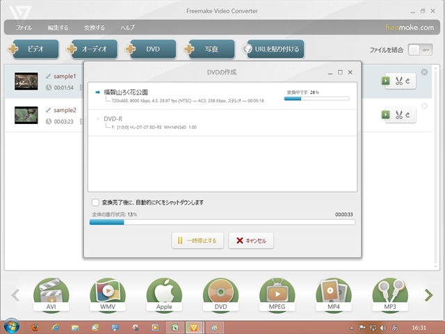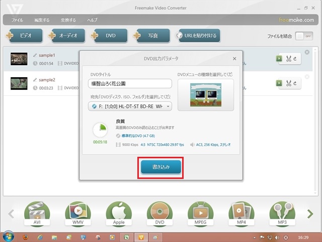 Freemake Video Converterを使うと、DVD作成だけでなく、パソコン用やスマートホン用の動画ファイルを作成することもできます。