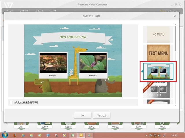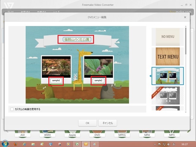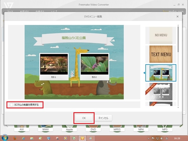 オリジナルの写真を背景にしたい場合は、「カスタムの背景を使用する」にチェックを付けますが、今回は使用しません。